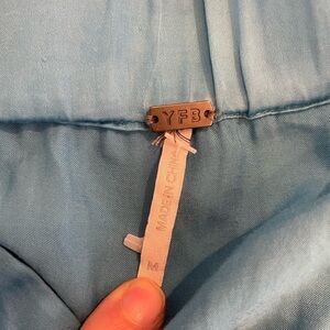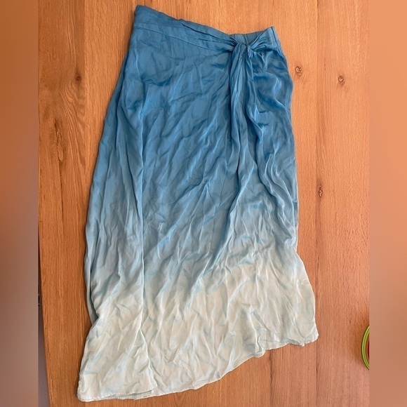 Deadstock YFB skirt featuring a beautiful blue to aquamarine ombré. Has gathered fabric detail. Has hidden side sizer. True to size.