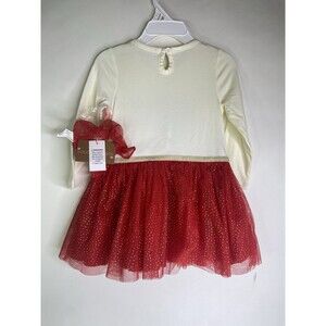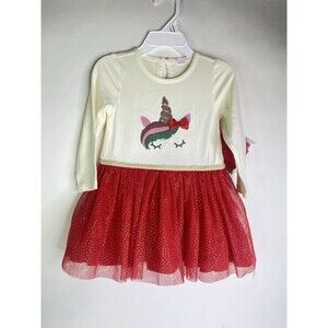 Young Hearts Girls 18 Months Holiday Long Sleeve Unicorn Tutu Dress Hair Tie