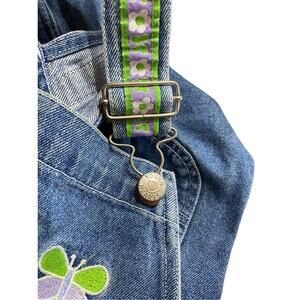 Young Hearts Girls Denim Embroidered Floral Shortalls Size 5. Bib embroidered with Daisy and Butterflies. Adjustable straps with flowers and butterflies. Cute for Summer.