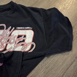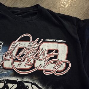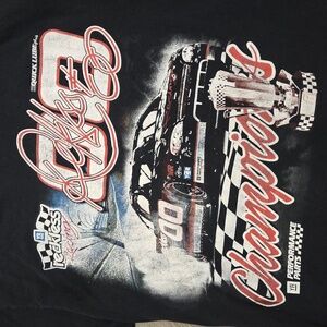 XL worn t-shirt with racecar graphics.