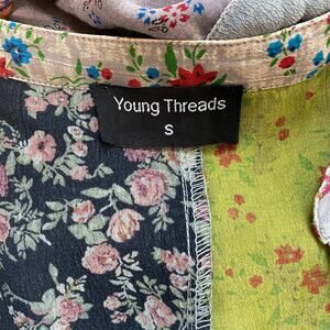 Young Threads Small Patchwork Tunic Babydoll Dress V Neck Festival Boho Hippie