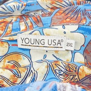 Young USA Mens Hawaiian Shirt 2XL Blue Tropical Beer Pineapple Floral