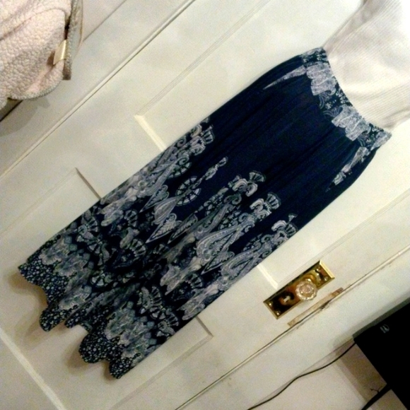 beautiful navy and white with an elastic waistband. waistband measures 12 in unstretched