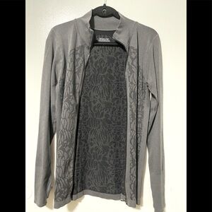 Pre own great condition No flaws Zipper Dark grey black Size XL 72% Nylon 22% polyester 6% spandex Any questions please ask
