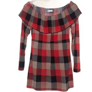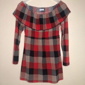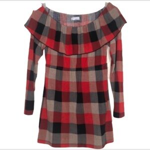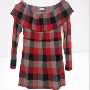 Young at Heart Red Plaid Top Off The Shoulder Size Small