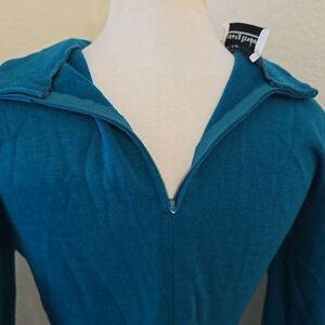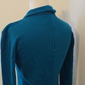 Unique vintage style. good condition. super flattering and comfortable. color is green but looks bluish on photos l. please refer to photos for more details and measurements. smoke-free home.