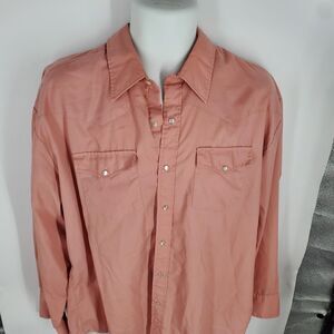 YoungBloods Shirt Mens XL Pink Western Pearl Snap Long Sleeve Two Pocket Cowboy