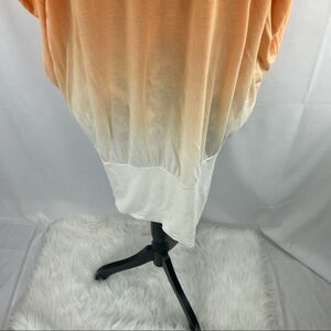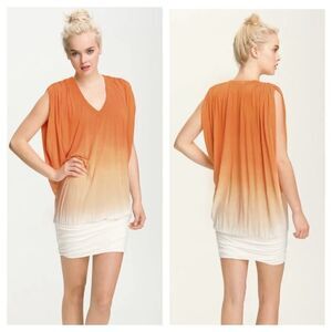 Young, Fabulous & Broke 'Otti' Dip Dyed Cape minidress size small. Orange ombré dip dyed color. Cape sleeves with cape-like body that creates a breezy silhouette. A wide banded hem lends versatility, allowing the style go from a tunic to a minidress. V-neck collar and rayon material with stretch. No holes or stains, one indent on top as pictured. Not noticeable. So cute on!