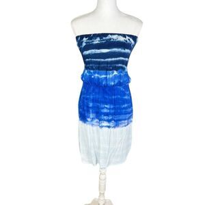Young Fabulous and Broke Blue Tie Dye Strapless Dress Small
