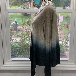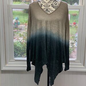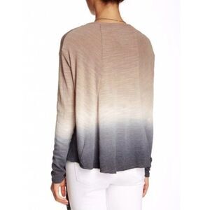 Young Fabulous & Broke Gabby Asymmetrical Hem Sweater, Size Small, Lightweight V-neck sweater cut with a jagged-front, raw-edge hem. Tan into blue / gray ombre, 50% polyester 38% cotton 12% rayon, EXCELLENT Condition
