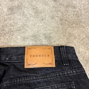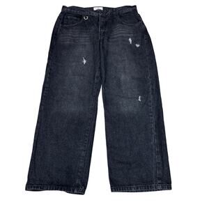 YoungLA 6037 Loose Essential Jeans Distressed Black Denim Men's XL (36x30).