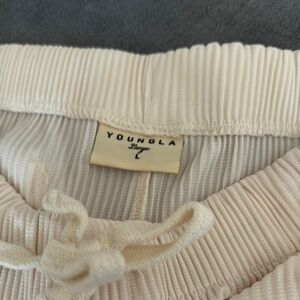 YoungLA Cream Ribbed Drawstring Shorts