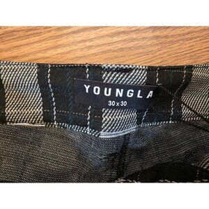 YoungLA Dapper Dress Pants Mens 30x30 Black Plaid Adjustable Waist 614 Tapered
