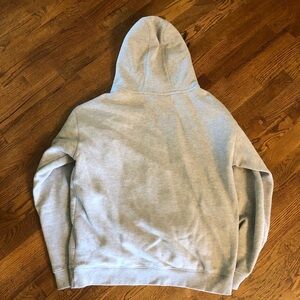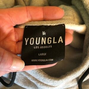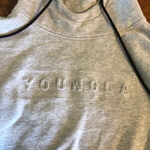 Stylish gray hoodie by YoungLA. Features black accents and a cozy design. Men’s size large measures 23” pit to pit and 24.5” total length from nape of neck