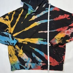 YoungLA Hoodie Mens Small Black Tie Dye Pullover Multicolor Streetwear Sweatshirt