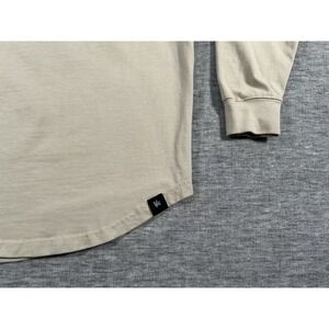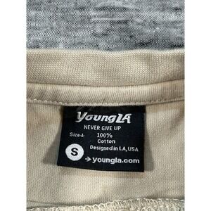 YoungLA Los Angeles Shirt Mens Small Beige Long Sleeve Pullover Curved Hem