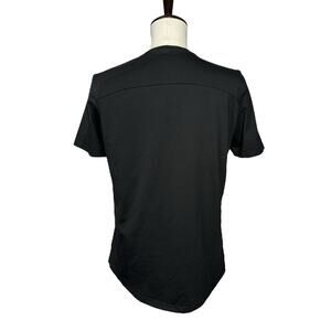 Pre-loved men’s YoungLA black stretch cotton minimal drop cut tee with raised front panel logo.