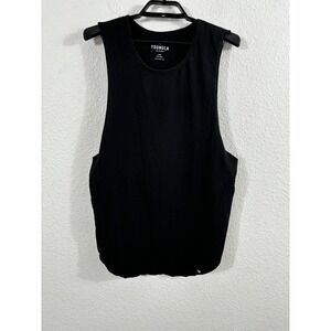 YoungLA Tank Top Mens Large Black Muscle Gym Drop Armhole Raw Edge Cotton 308