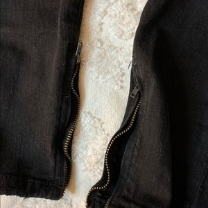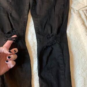EUC. YoungLA. Black skinny jeans. Intentional rips at knee. Zip closure at ankle. With elastane for stretch