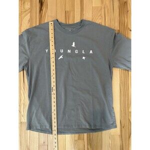 The YoungLa long sleeve shirt for men in size M features a gray color with an oversized bird logo graphic on the chest. Made from a blend of spandex and cotton, this t-shirt is machine washable and has a crew neck. The regular fit shirt is designed with a hipster, designer, and bird theme, making it a stylish choice for those looking for a unique addition to their wardrobe. Perfect for casual wear or as a statement piece for those who appreciate a classic yet contemporary look.