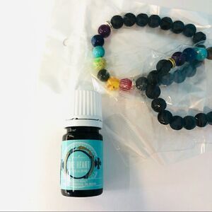 Young Living “One Heart” Essential Oil + 2 Lava Rock Chakra Diffuser Bracelets