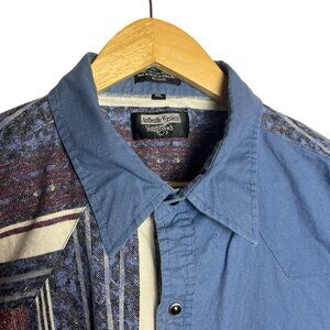 Youngbloods Men's XL Short Sleeve Button Up Blue Abstract Western Cowboy Rodeo