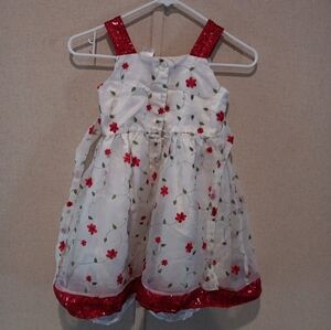Youngland Infant Toddler Girls White Red Rose Flower Dress Size 6x