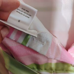 This elegant sundress by Youngland features a sleeveless, halter neckline and a pleated A-line silhouette, perfect for wedding guest occasions. The dress showcases a delightful combination of pink and green hues, adding a fresh and vibrant touch to its design. Its pleated skirt and crisp fabric ensure a graceful and stylish appearance.