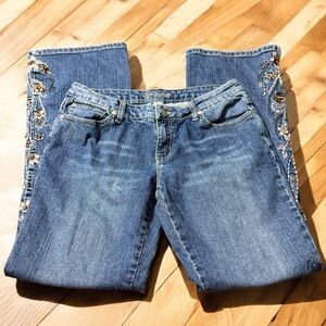 Younique Floral Beaded Flare Jeans Size 11 Juniors (30” Waist) Y2K Vintage
