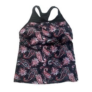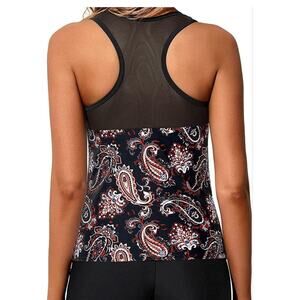 Features: Paisley print, mesh upper, built-in bra with removable padding, racerback design, boy short bottoms, top and bottom included