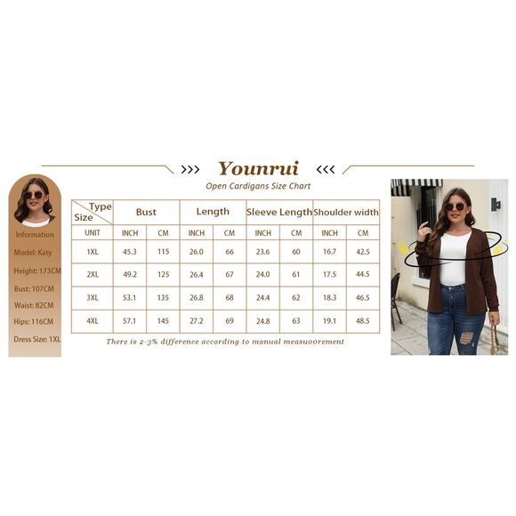 * Description: Classic fit, this long-sleeved cardigan has no buttons or zippers and opens easily for easy dressing. It has a regular length that falls just below the waist and stops somewhere along the upper-to-mid-hips. Perfect for pairing with both high and low-rise Jeans, skirts, dresses, and more