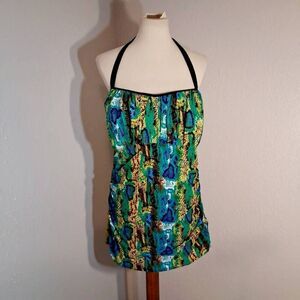 Your Best Look Vibrant Blue and Green One-Piece Swimsuit Size 20W