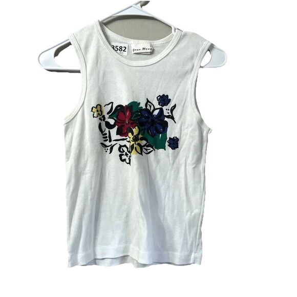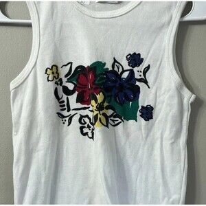 Your Move Vtg Y2K White Tank Top Flowers Graphic Boho Vintage Grunge L Womens