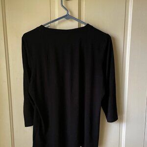 Your Sixth Sense (brand, not the movie) black, three quarter sleeve tee in like new condition. Measures approximately 19 inches across the chest and 23 inches from shoulder to hem. Classic style. Hard to see in the photos but the neck has a slight overlap style at the center.