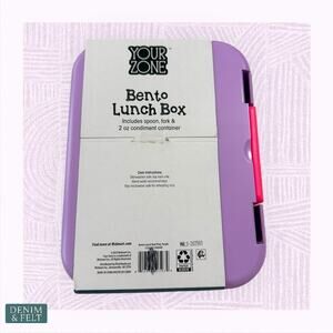 Your Zone Bento Lunch Box Pink Purple with Utensils & Condiment Container NEW