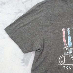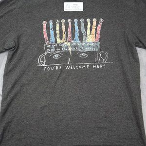 Youre Welcome Here Shirt Mens L Gray Short Sleeve Crew Neck Knit Print Basic Tee