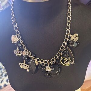Make a bold statement with this rare and eye-catching vintage charm necklace featuring a Queen of Hearts pendant accented with black stones. Elegant, edgy, and full of character — perfect for collectors or anyone who loves unique vintage pieces.