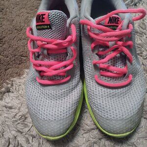 Super light weight and comfy nikes. Grey with bright yellow fading into bright pink. Fit like womens 8.5 or 9