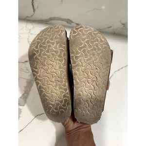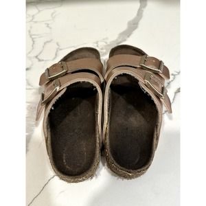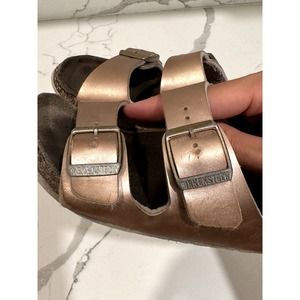 Girls Birkenstock Arizona sandals in rose gold. Good used condition with some normal wear as seen in photos