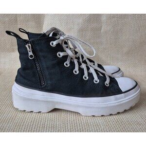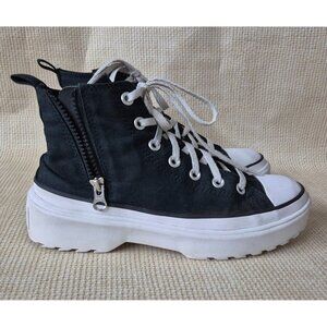 Youth Black & White Chuck Taylor All Star Lugged Heel Platform Sneaker Size 6