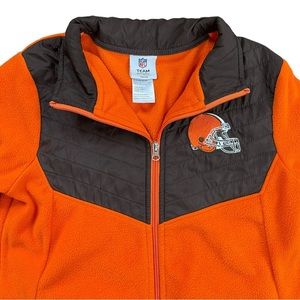 Youth boys orange with brown Browns NFL Apparel jacket. Youth boys size large. Features full zip, pockets and the Browns logo on the front left chest. In excellent condition no holes or stains.