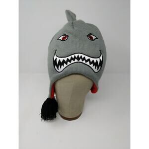 Youth Boys Shark Beanie Trapper Hat Embroidered Decorations Gray SEE DESC