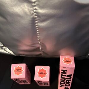 This eye-catching silver backpack features a modern reflective finish and vibrant pink accents, making it a standout accessory for any occasion. Crafted from durable synthetic material, it offers both style and functionality for everyday use. Includes 3 Youth Foria liquid blushes