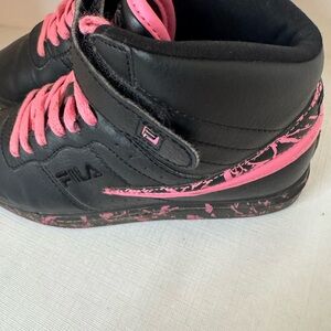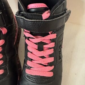 Youth Girls Black and Pink FILA Hitops Size 3.5. EUC Fast Shipping RN# 91175