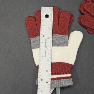 Youth Gloves Bundle Of 3 One Size Boys Red, Ivory, Grey, Striped, New, No Tag