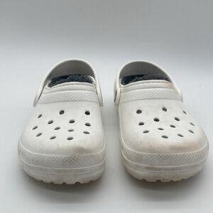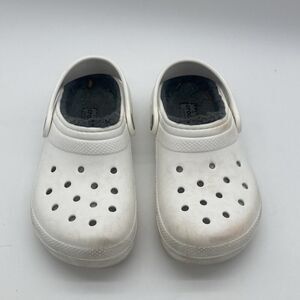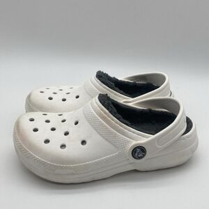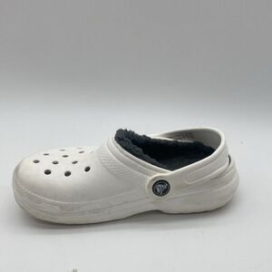 Youth Junior Crocs Classic Faux Fur Lined Clog Slip On White Gray Slippers