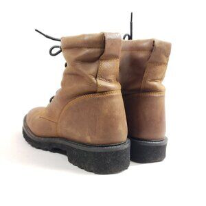 Youth Lace-Up Ankle Boots With Rugged Rubber Sole Size 5.5 D Brown Leather