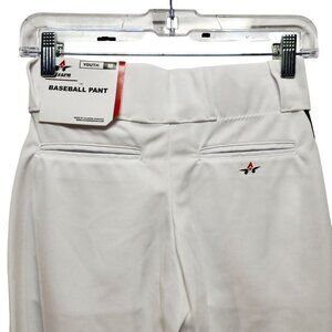 These youth medium baseball pants from Alleson are crafted for young athletes who seek both comfort and style on the field. Made from durable polyester, they feature a classic white design complemented by a distinctive black side stripe. These pants provide a snug fit with belt loops and a button closure, ensuring they stay securely in place during play. The reinforced knees add an extra layer of protection, making them suitable for sliding and diving plays. • Youth medium size for a comfortable fit • Button closure with additional snap for security • Belt loops for an adjustable fit • Reinforced knees for durability • Black side stripe for a stylish contrast Waist = 12.5 inches @2484morales