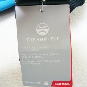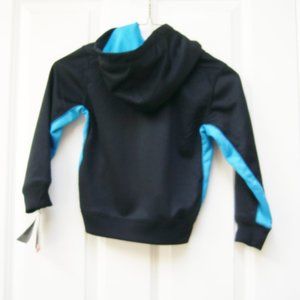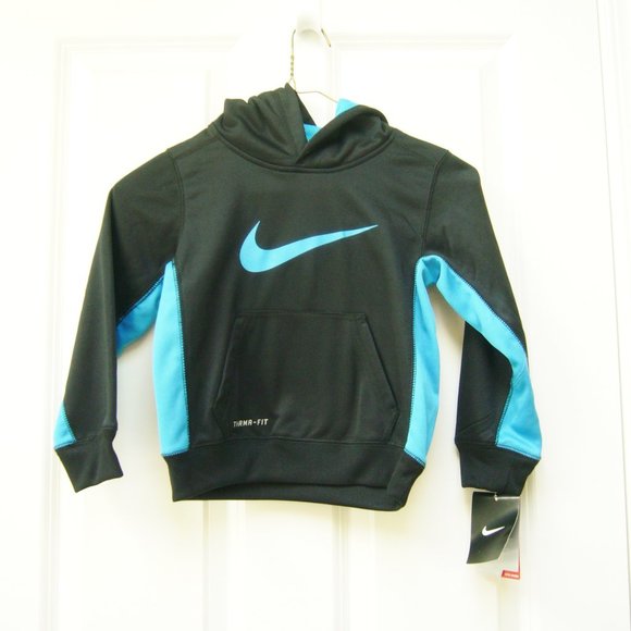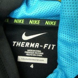 New with tags youth Nike Therma Fit hoodie, black with royal blue swoosh and side stripes, sz 4, no rips tears stains.