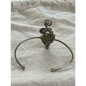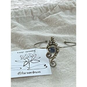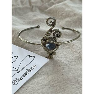 **Youth Silver Tone Cuff Bracelet with Unique Purple Bead**